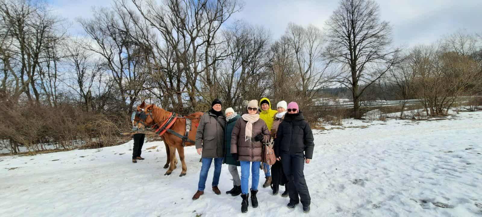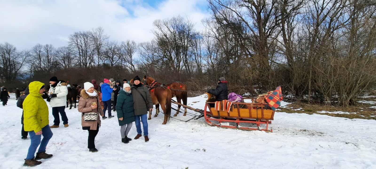 Nazajutrz rano udaliśmy się do Gładyszowa na kulig konny. Pogoda dopisała, a śniegu wystarczyło na tyle, by móc w saniach podziwiać przepiękny i malowniczy krajobraz Beskidu Niskiego. Następnie udaliśmy się na ognisko, gdzie wspólnie piekliśmy kiełbaski i kontynuowaliśmy niedokończone rozmowy. Bogatsi o nowe przyjaźnie w cudownych nastrojach wróciliśmy szczęśliwie do domów.