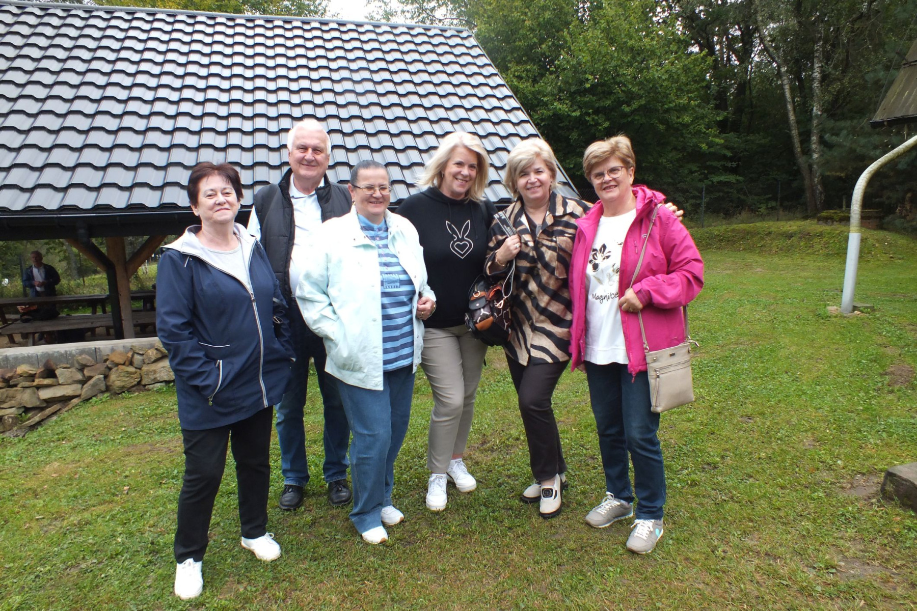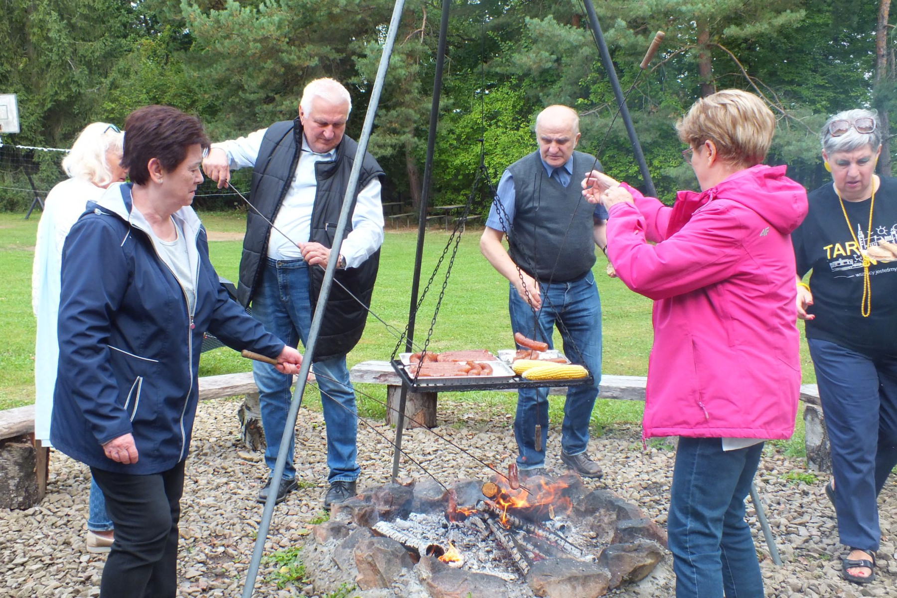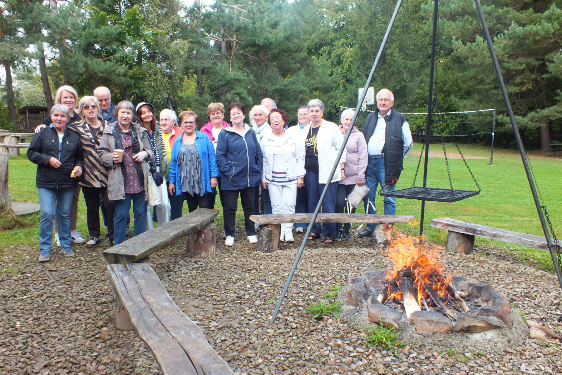 Drewniane ławy i takież stoły sprzyjały rozmowom, wspomnieniom i żartom, które krążyły niczym iskry nad ogniskiem. W otoczeniu zieleni, śpiewu ptaków i z uśmiechami na twarzach, uczestnicy zapozowali do wspólnej fotografii, która najlepiej oddaje atmosferę tego dnia: serdeczność, bliskość oraz radość z bycia razem.