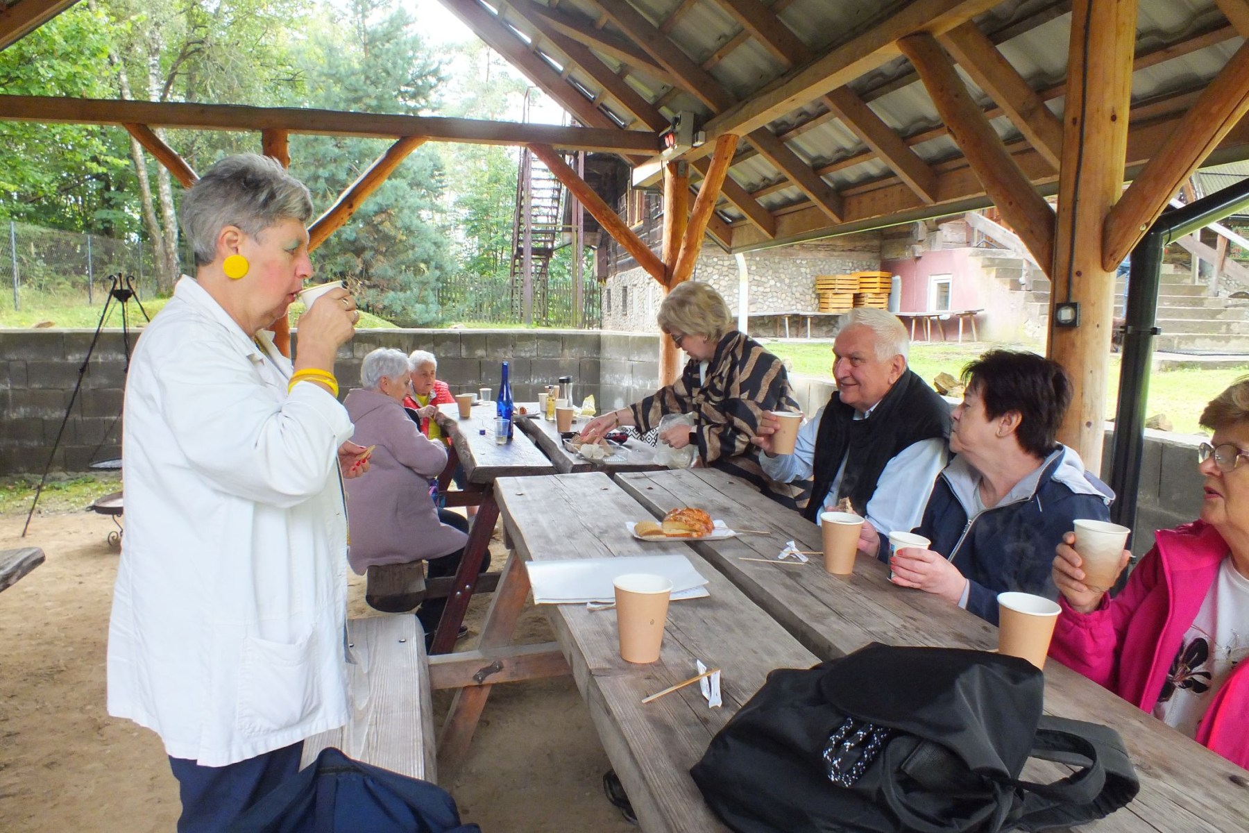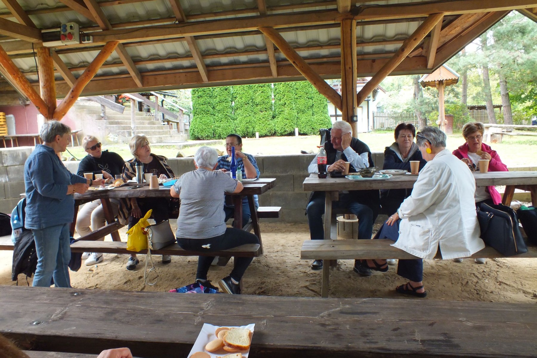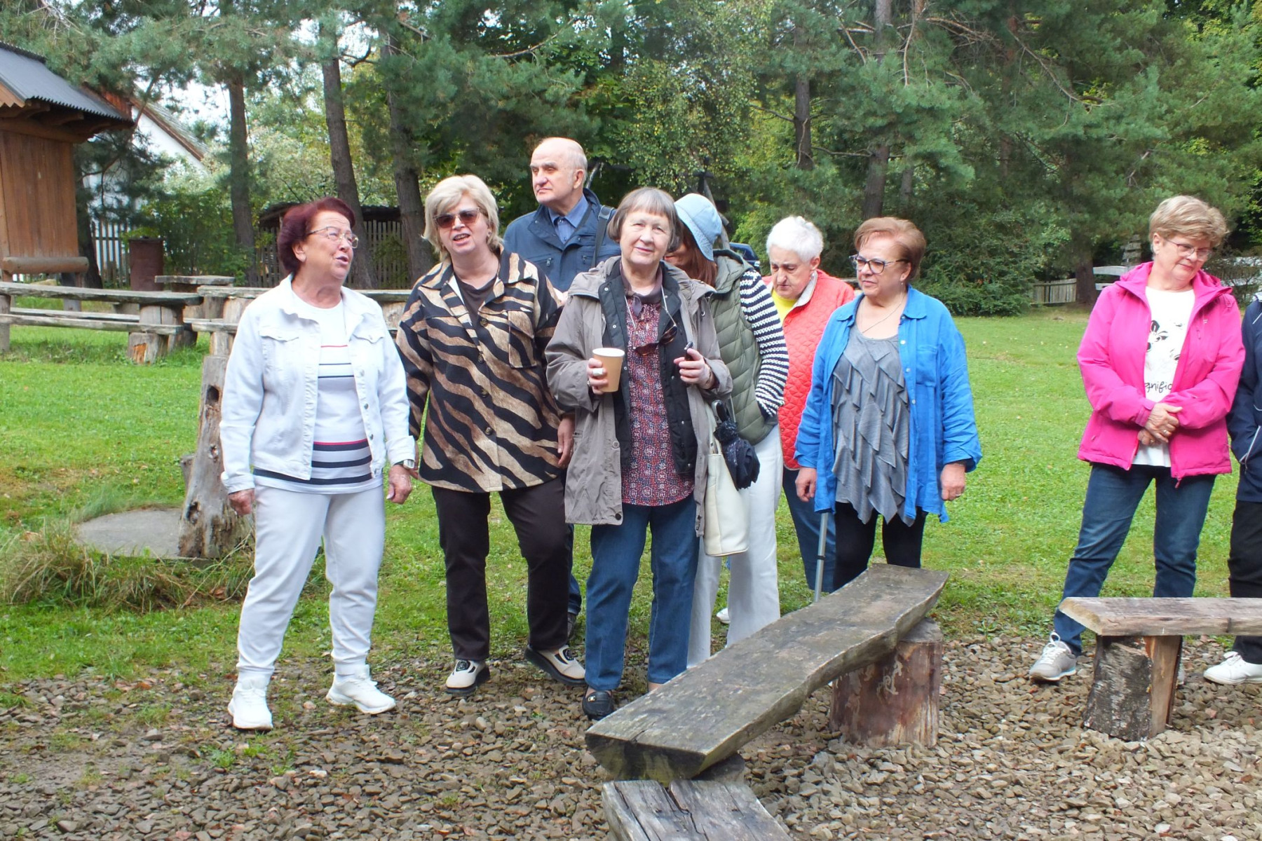 Drewniane ławy i takież stoły sprzyjały rozmowom, wspomnieniom i żartom, które krążyły niczym iskry nad ogniskiem. W otoczeniu zieleni, śpiewu ptaków i z uśmiechami na twarzach, uczestnicy zapozowali do wspólnej fotografii, która najlepiej oddaje atmosferę tego dnia: serdeczność, bliskość oraz radość z bycia razem.