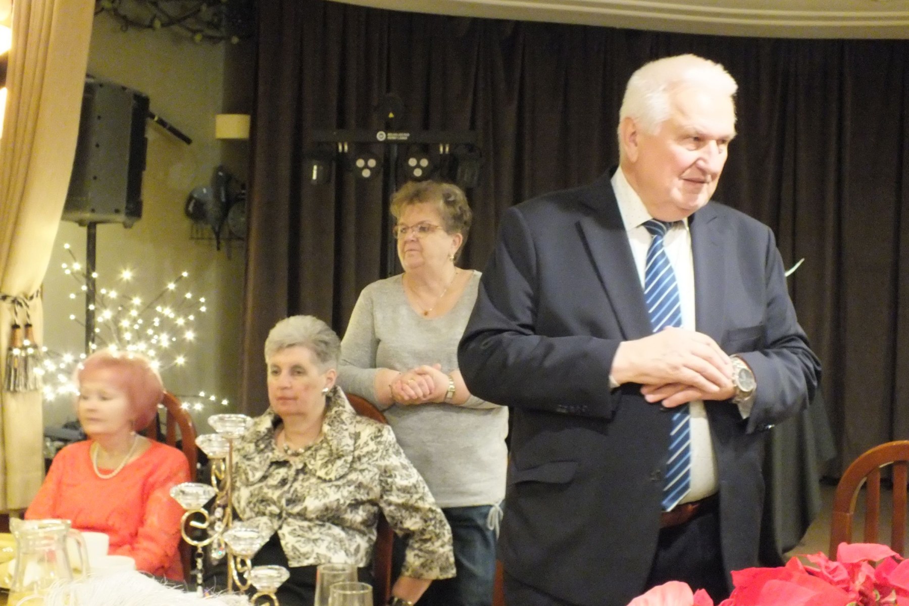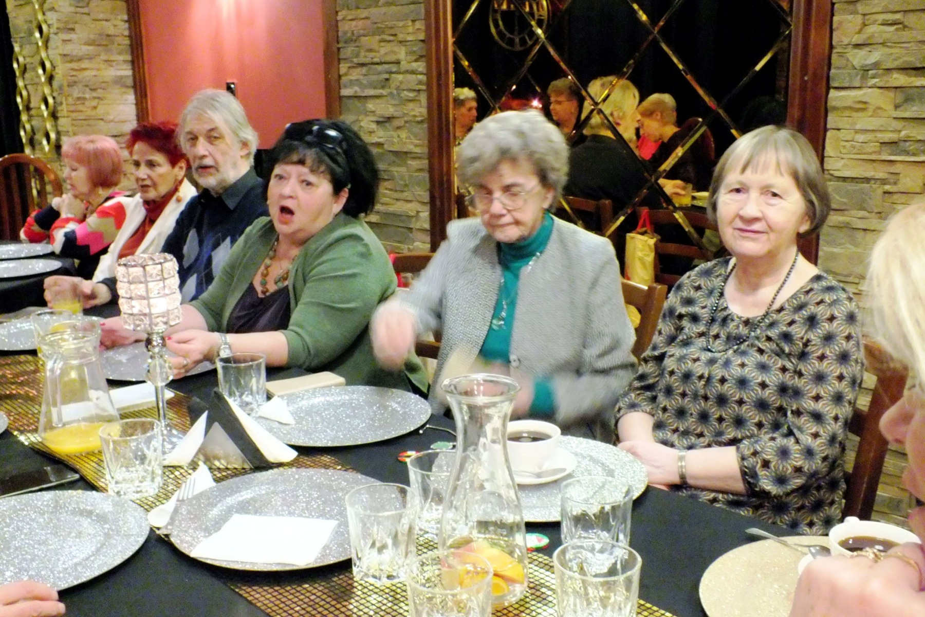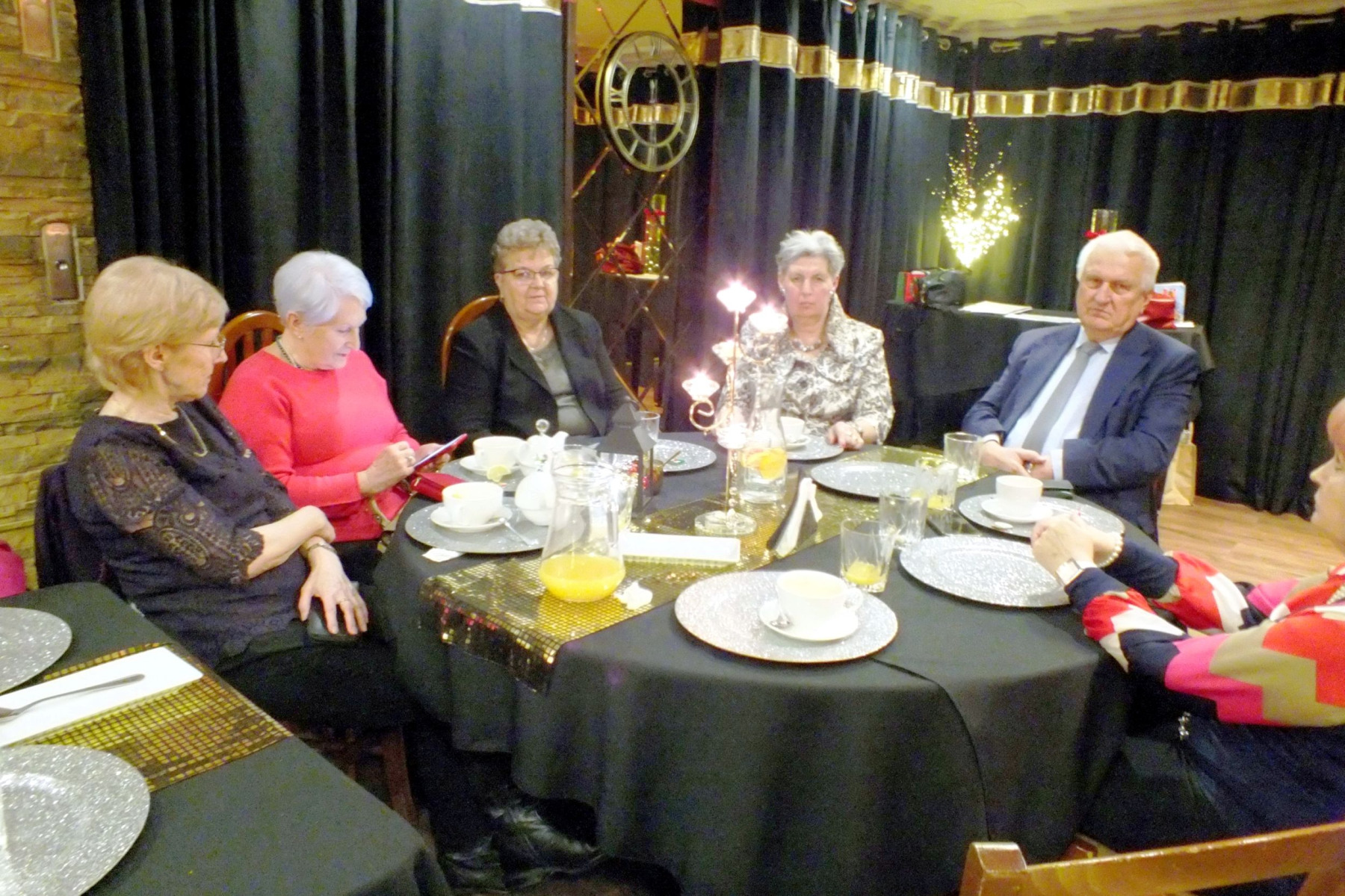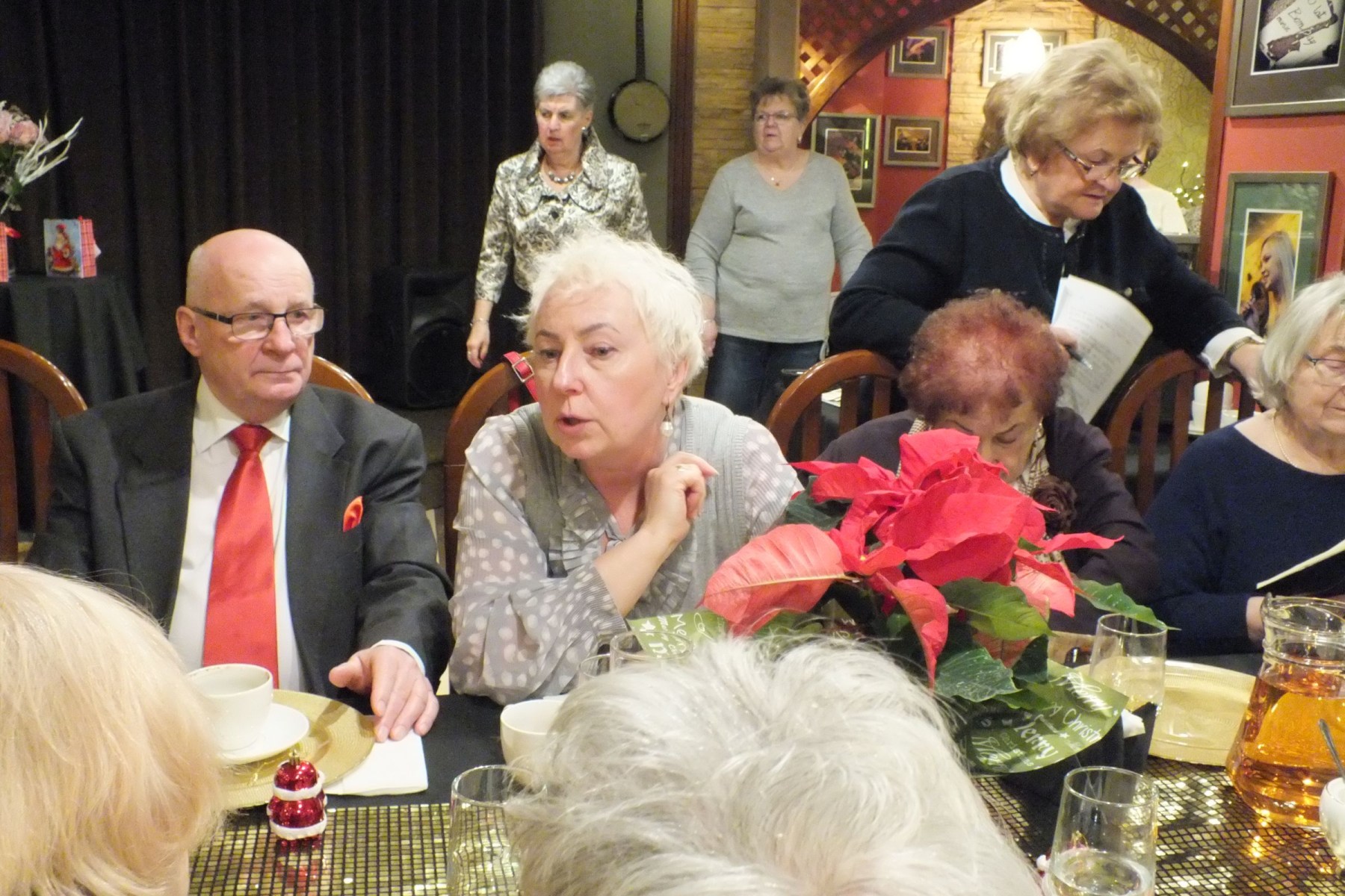 O świąteczny akcent zadbała nasza Przewodnicząca, kol. Ewa Buben, której dzielnie towarzyszył szef restauracji, Pan Marcin. Były więc życzenia z opłatkiem i noworoczny toast z lampką szampana.