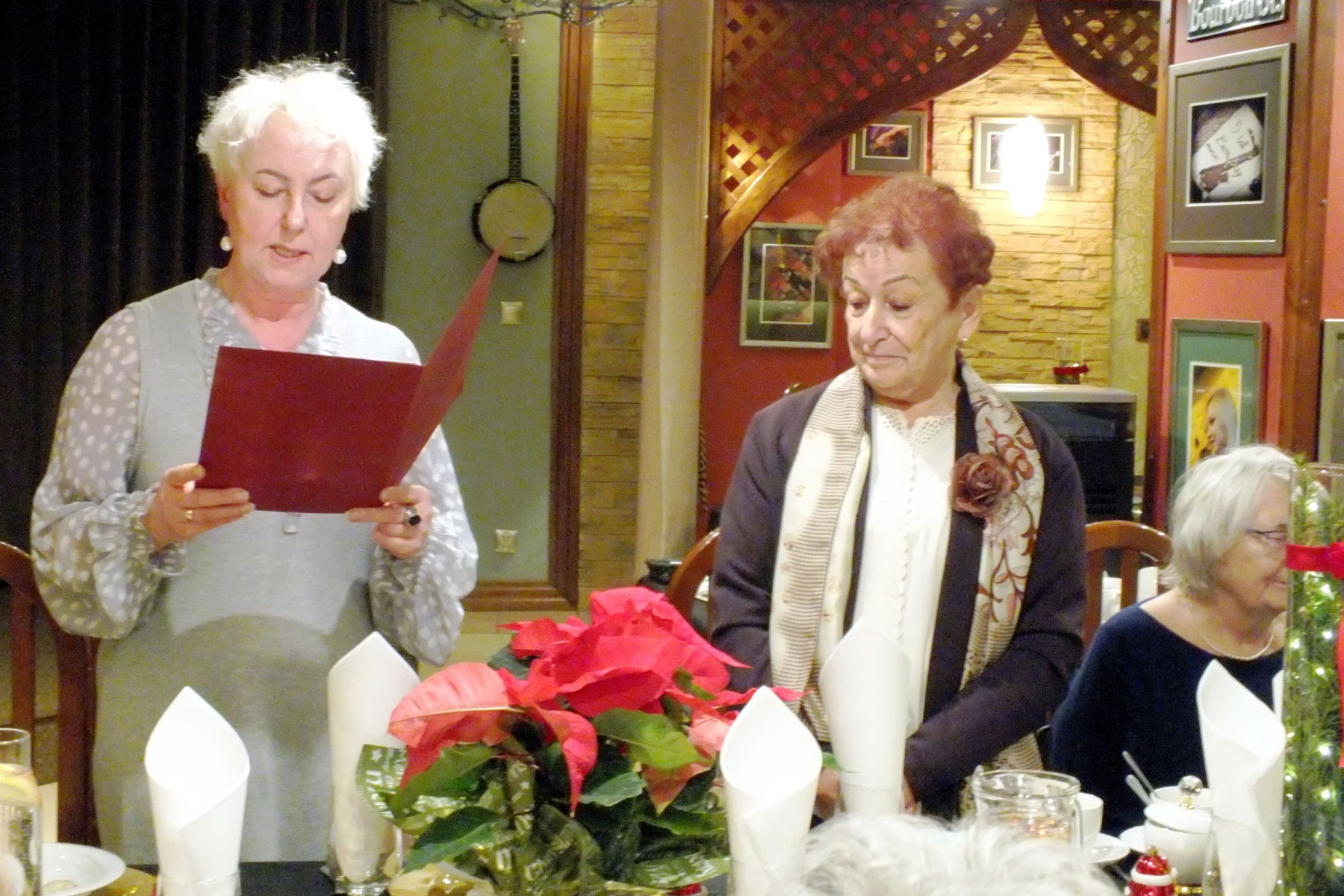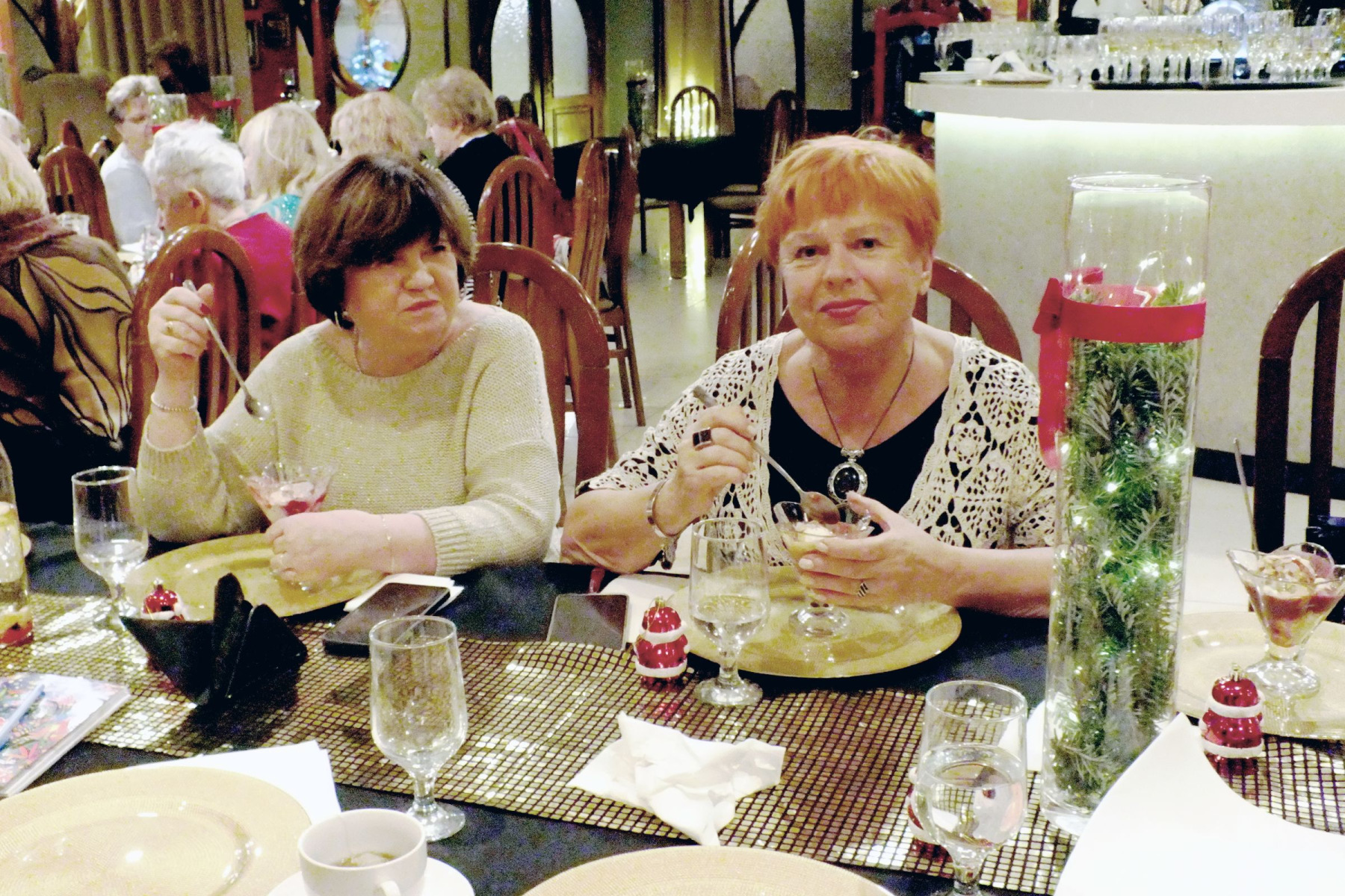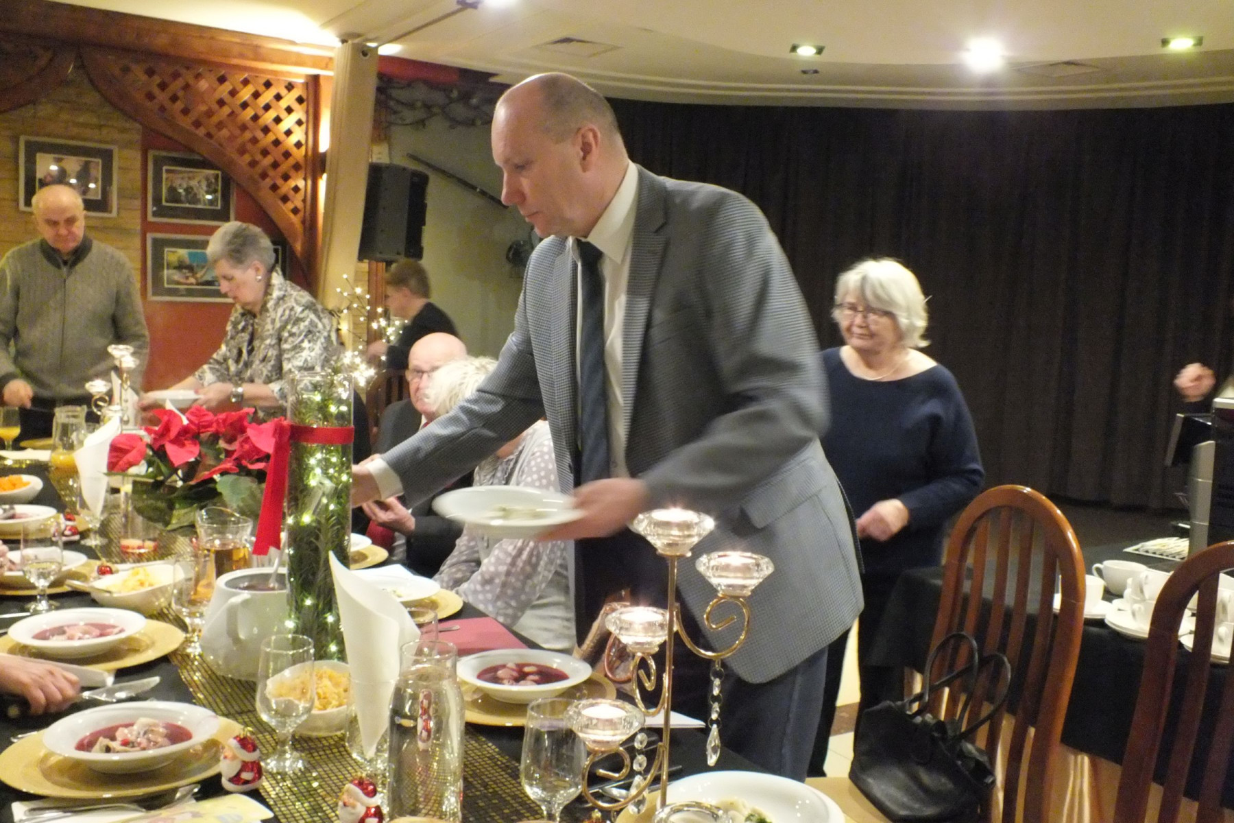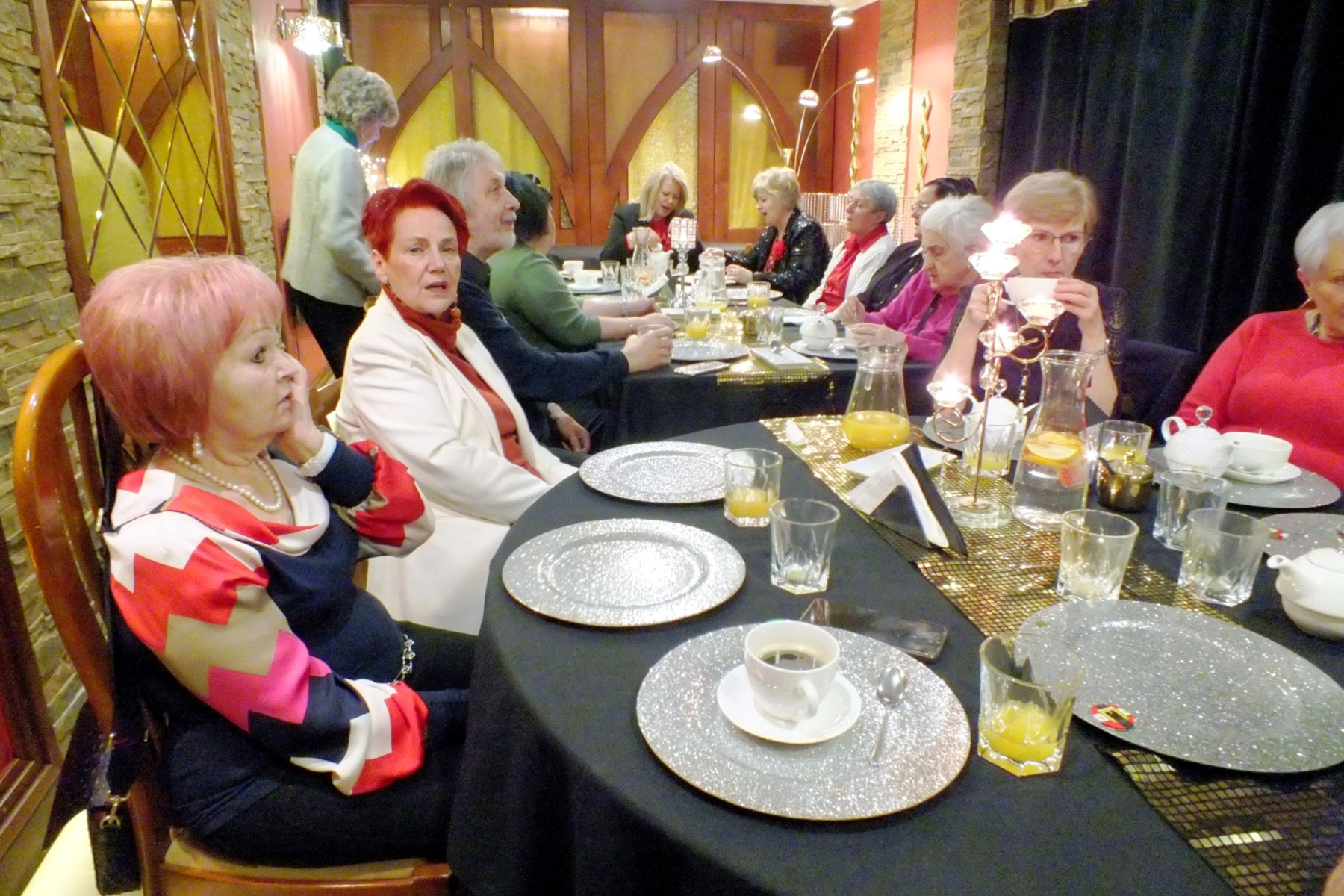 O świąteczny akcent zadbała nasza Przewodnicząca, kol. Ewa Buben, której dzielnie towarzyszył szef restauracji, Pan Marcin. Były więc życzenia z opłatkiem i noworoczny toast z lampką szampana.