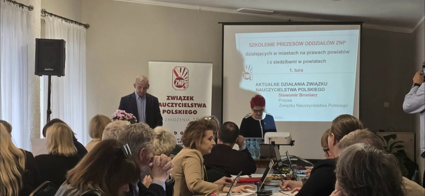 W dniach 8-9 kwietnia 2026 roku w DW Nauczyciel w Ustroniu Jaszowcu odbyło się szkolenie dla Prezesów Oddziałów działających w miastach na prawach powiatów i z siedzibami w powiatach Związku Nauczycielstwa Polskiego, w którym udział wziął prezes Oddziału ZNP w Tarnowie Andrzej Dziekan.